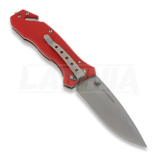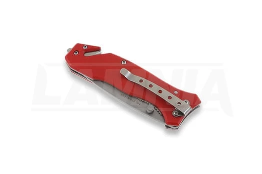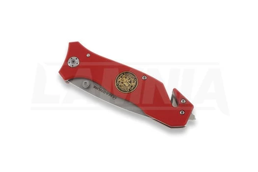This series of highly functional rescue knives is dedicated to police, paramedic and rescue professionals, who do their best in their dangerous fulfillment of duty and often risk it all to save lives. These knives are equipped with all the necessities: glass breaker, belt cutter, carry clip, and corrosion resistant 440 stainless steel blades. The only knife in this series with a high-grip G-10 scale. Red handle with firefighter logo inlay.