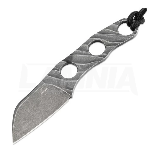The Boker Plus Kazhan designed by Alexander Krava is a handy neck knife with a short sheepfoot blade that is ideal as a backup knife for everyday use due to its light weight. The young knifemaker from Lviv, Ukraine, places particular emphasis on the aesthetics of his designs, which are convincing not only as reliable tools but also as high-quality accessories. The skeletonised Kazhan is made of D2 with a dark stonewash finish. Weight-reducing cut-outs and three-dimensional milling give the knife a very special look. Supplied with a lanyard, ball chain, custom-fit Kydex sheath and an additional belt adapter.