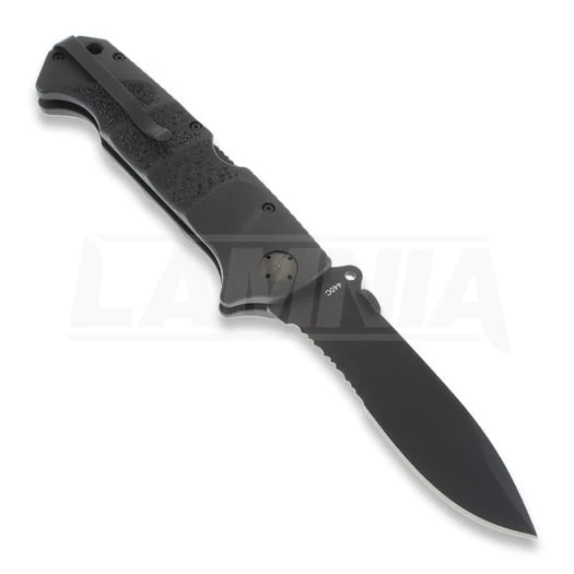 The design of the recurved blade makes everyday cutting chores a breeze with this pocket knife. Both sides of the 440C stainless steel blade are flat-ground, for easy re-sharpening. The blade is black-coated, which provides added corrosion resistance.