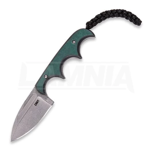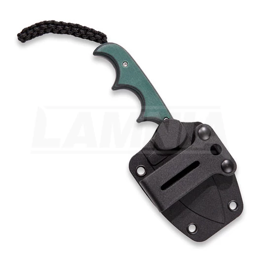5.25″ (13.34cm) overall. 2.13″ (5.41cm) stonewash finish 8Cr13MoV stainless spear point blade. Green finger grooved handle. Resin infused fiber handle. Black braided cord lanyard. Black thermoplastic sheath.