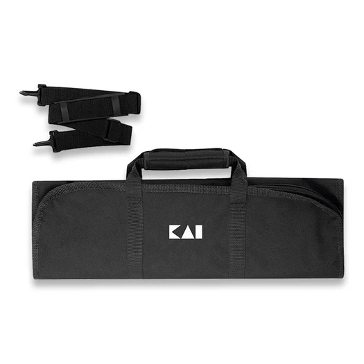 Dimensions: 495 mm x 165 mm. PVC laminated 600 denier polyester construction with nylon straps. Fully zippered. Accommodates up to 8 knives. Shoulder strap. Unfolded dimensions: 495 mm x 457 mm. Color: Black.