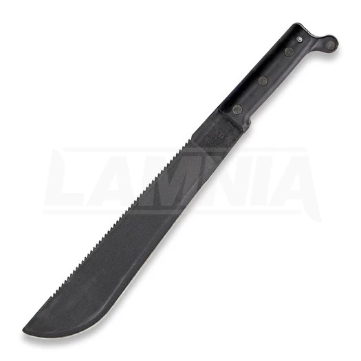 17 1/4″ overall. Black zinc phosphate finish. 12″ 1095 carbon steel blade with sawback. High impact shatterproof polymer handles. No sheath.