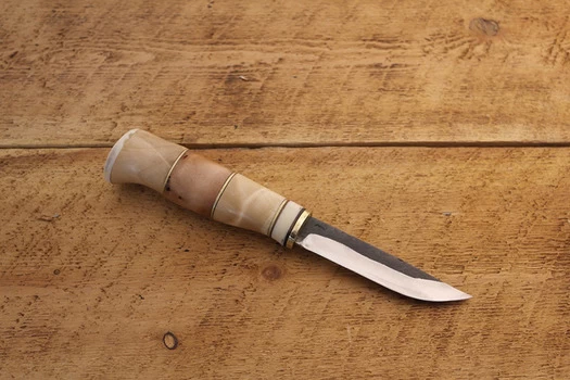 The carbon steel blade is best suited for hunting and recreational use. The blade is easy to sharpen, but requires care to ensure the blade does not rust. It is important to dry the knife well after using.