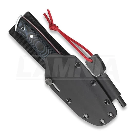 Set sparks flying with the Outdoor Master Mic L knife. Not only does the full tang design give optimal strength as the blade runs seamlessly through the handle, this knife also has super-tough Micarta scales. The drop-point blade has been crafted with an easy to sharpen Scandi grind, and the neat protective Kydex sheath provides ultimate protection. The Kydex sheath is compatible with the Tek-Lok System. All in all, this is a knife that means business, providing power, precision and versatility.
